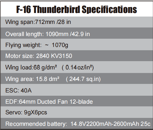 64mm EDF F-16 PNP BLUE THUNDER