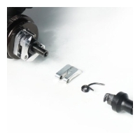 When installing the clutch shoes, put the tool spring guide (hook) under the clutch spring. Turn the tool counter-clockwise to lift the spring above the clutch nut and push to seat the shoe. Then, turn clockwise to let the spring guide (hook) rotate out from beneath the clutch spring. In case the spring is not well seated, just use the top of the tool to push the spring and make it sit in the groove of the clutch nut.