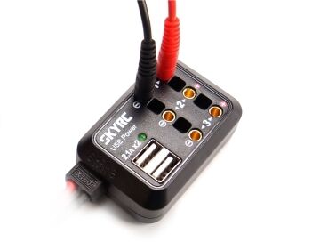 The world's smallest multi-port distributor features three outputs which support both banana connector and alligator clips. Two 5V 2.1A USB ports which support Smartphone and other devices. The DC input power lead is changeable.