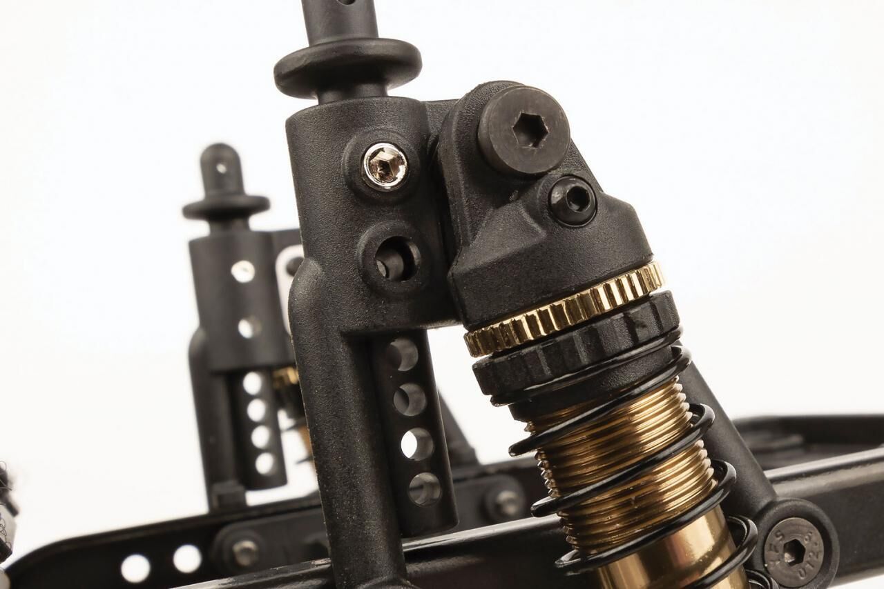 - Factory Team shocks:For ultra-smooth performance and looks, our machined aluminum threaded bronze-anodized shocks with black plastic caps and aluminum collars are included.