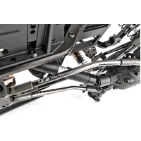 We’ve updated the Builder’s Kit yet again by including our GKS™ shock towers in front and rear. Our shock mount inserts provide the ability to adjust shock angle, droop, and vehicle ride height without affecting spring preload. Matched up with the shock mount inserts are our race-proven ultra-smooth Factory Team bronze shocks with black plastic bleeder caps and collars–perfect for traversing rough terrain. Along with the updated shock towers, we’ve included the GKS aluminum track bar mount that is bolted directly to the frame rails. This makes the front suspension more rigid and flex-free with a more precise steering feel. Also included are updated Factory Team 12.3 and 12.8-inch wheelbase high-clearance links with black nitrate finish and durable Factory Team steel pivot balls for smooth articulation.