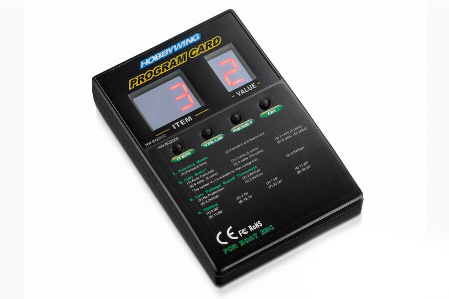This COMBO deal also includes an LED program box for programming HobbyWing brushless ESCs. Its friendly interface makes ESC programming easy and quick while it’s compact, portable and very applicable for field use.