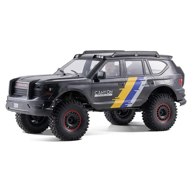 The FMS CANYON is a rugged off-road machine inspired by Dubai’s futuristic police supercar. Designed for realism and built for performance, it features a high-strength PC body shell with durable nylon roof panels, bumpers, mirrors, and door handles. Clear windows reveal a detailed driver figure and a fully replicated cockpit interior. A synchronized LED lighting system includes functional headlights, turn signals, and tail lights with customizable light buckets for scale accuracy. The body attaches using FMS’s patented magnetic quick-mount system, which automatically connects power and lighting functions for easy setup. Underneath, the reinforced nylon chassis offers outstanding rigidity and impact resistance. Power comes from a two-speed transmission with reverse, metal gears and bearings, and portal axles that deliver maximum ground clearance. Finishing touches include servo-saver protection, rear brake discs and functional DIG mode for ultra-tight, tank-style turns.