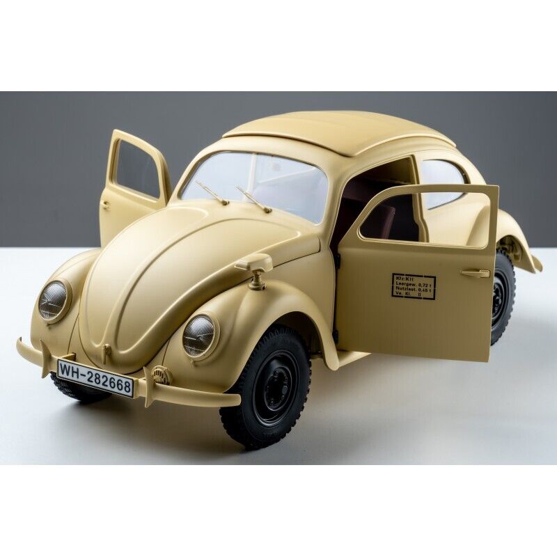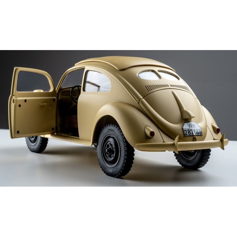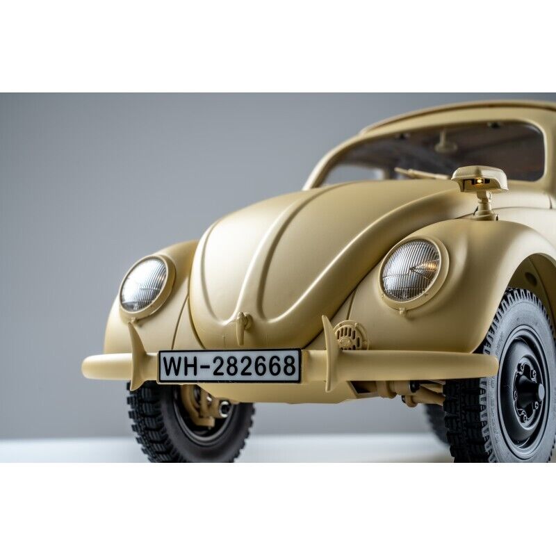 KdF-Wagen, known as the people's car when none were sold to the people, all being commandeered by the army and converted into military vehicles, the most famous being the Kübelwagen (Published Nov., 2021, Product No.__ ). We are honored if you already have it in your RC collection. If not, the Type82E is a great start for realistic RC models. The Type82E, primarily offered to senior officers, uses bodywork from KdF Wagen on the same chassis as the Kübelwagen, a rear-mounted, rear-wheel-drive chassis with a limited-slip differential. The post-war civilian version was the Beetle, which later became world famous.