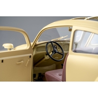 We start with the engine. The air-cooled Boxer engine serves as the heart of the car, an engine used in several subsequent generations of classic cars and which lasted 65 years in the Beetle, a saga that ended when the last Beetle, number 21 529 464, rolled off the production line in Puebla, Mexico on July 30, 2003. The Type82 originally used a 985 cc engine, which later grew to 1131 cc, then the displacement gradually increased, and the Porsche 356 used a 1488 cc engine, doubling the power from the start. The cylinders of the horizontally opposed engine are distributed on both sides, a 130 engine in the right cylinder position, and another 130 engine reserved for the left side, which makes it possible to produce twice as much power when it is applied to VW T1 or Porsche356 platform. The engine crankshaft flywheel is connected by a belt to drive the generator as well as the cooling fan. The semi-circular fan shroud is a major feature, in which the airflow is distributed to the cylinders on both sides. Everything is faithfully restored to the model, which means you can watch the blades spinning in the fan intake as the engine runs. The Kübelwagen has 4 forward gears and the maximum speed of each gear is 18.4km/h in 1st gear, 32.4km/h in 2nd gear, 54.2km/h in 3rd gear and 83.6km/h in 4th gear respectively. speed. The corresponding red line of shift tips is available on the dashboard. On the model, we designed a 2-speed shift to simulate the real car's 1st and 3rd gear speed. Power goes through the top of the rear axle differential and then back to the rear axle. The model shares the same structure as the real engine, with the advantage of compactness, making it easy to switch between 4WD and RWD modes. This shifting function is perfectly reproduced on the model to provide more off-road driving pleasure. making it easy to switch between 4WD and RWD modes. This shifting function is perfectly reproduced on the model to provide more off-road driving pleasure. making it easy to switch between 4WD and RWD modes. This shifting function is perfectly reproduced on the model to provide more off-road driving pleasure.