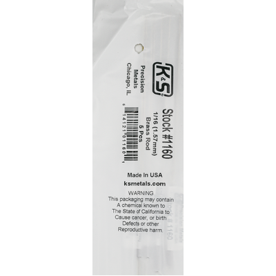 K&S 1160-1 SOLID BRASS ROD (36IN LENGTHS) 1/16IN (2 rods per bag )