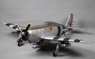 A highly scaled, lightweight, and easy-to-assemble warbird, the FMS P-47 Razorback 'Bonnie' 1500mm adds a slew of innovations to a proven platform. Based on the original 1400mm P-47, the 1500mm model features a 99% scaled control surface, landing gear cover, cockpit interiors, plastic cowling, gun turrets, retracted landing gear, and panel lines.