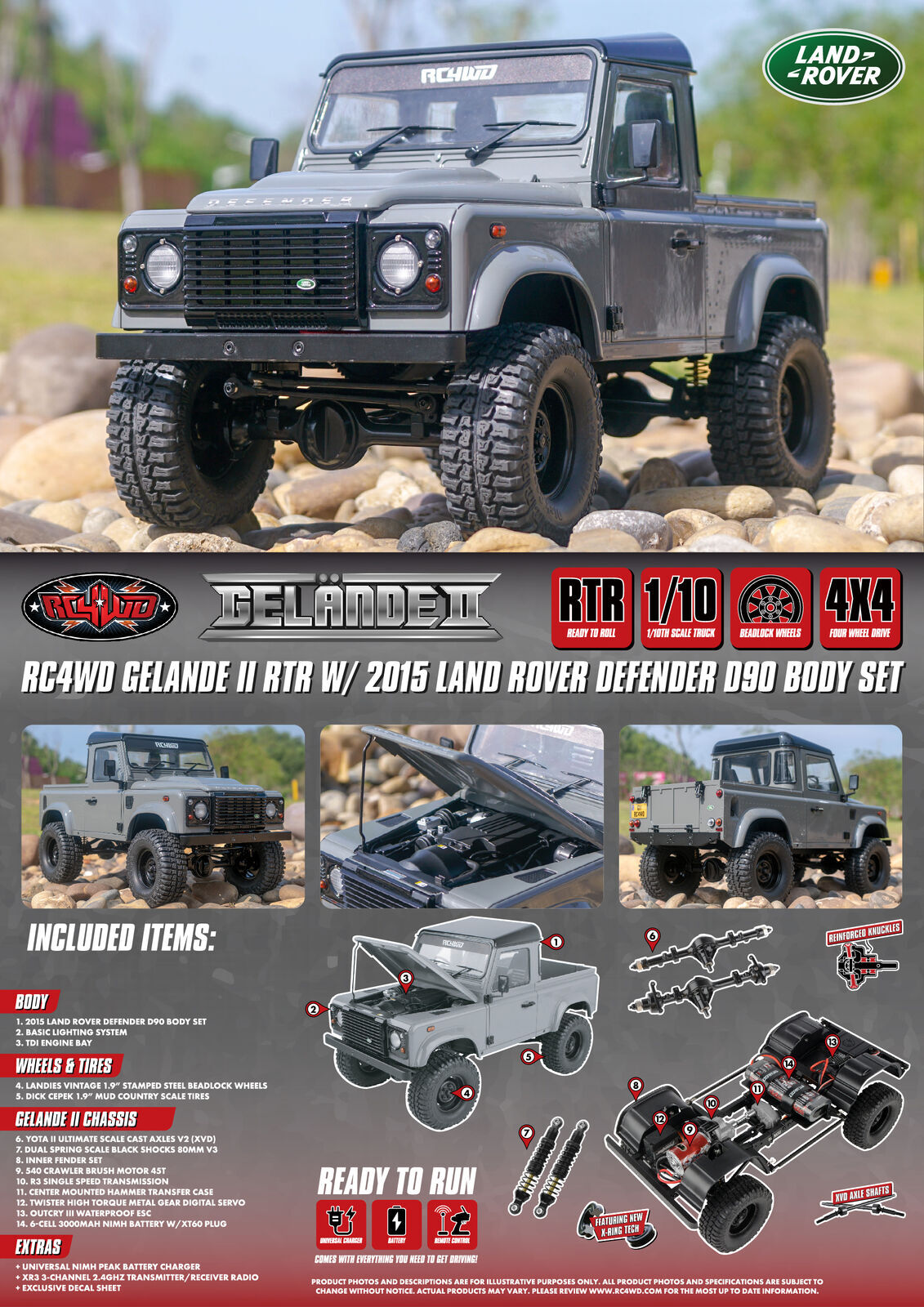 RC4WD Gelande II RTR W/ 2015 Land Rover Defender D90 Body Set (Grey)