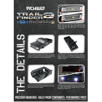 With strength in mind, the ladder frame design of the Trail Finder 2 "LWB" Chassis is made with CNC machined, billet aluminum and comes with scale shock hoops, a chassis servo mount, and transmission and transfer case mounts.