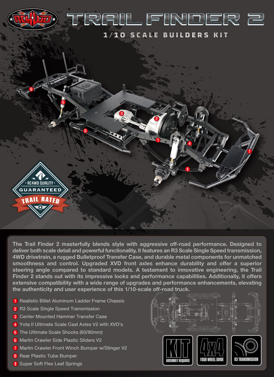 - 1x RC4WD Trail Finder 2 Truck 1/10 Scale Builders Kit