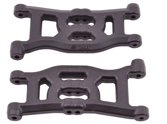 RPM A-arms for the Associated B4, B4.1 & B4.2 were designed to solve several customer-related complaints about the stock A-arms. Foremost is durability. Our B4 front A-arms are designed to withstand some serious abuse! We’ve redesigned the entire front end, replacing the stock front bulkhead with a version that helps spread impact forces over a larger area at the inner hinge pin mounts. RPM front A-arms are wider at the inner hinge pin by nearly 3/16” without altering suspension geometry.