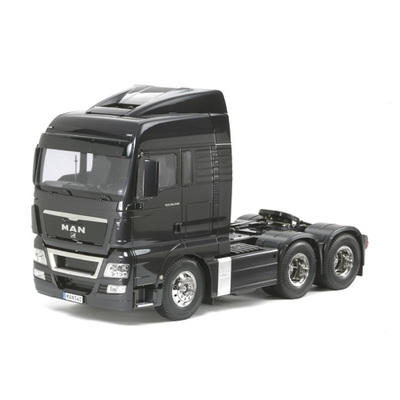 The latest addition to Tamiya's 1/14 scale R/C Tractor Truck series is the MAN TGX 26.540 6x4 XLX. This impressive truck, which made its debut at the 2007 European Transport Road Show in Amsterdam, was the winner of the 2008 Truck of the Year award. It features two rear axles which assist in the carrying of heavy loads over long distances. It is powered by an in-line 6 cylinder 12.4 liter turbocharged diesel engine which meets the stringent Euro 5 emissions standards to make it more environmentally friendly.