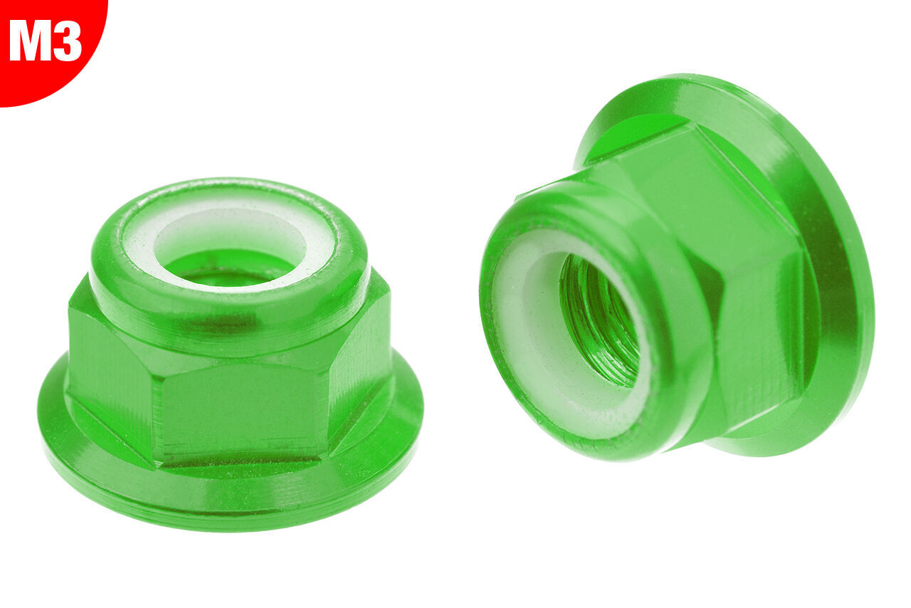 Team Corally - Aluminium Nylstop Nut - M3 - Flanged - Green - 10 pcs