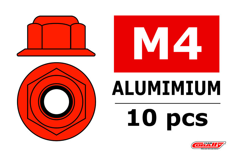 Team Corally - Aluminium Nylstop Nut - M4 - Flanged - Red - 10 pcs