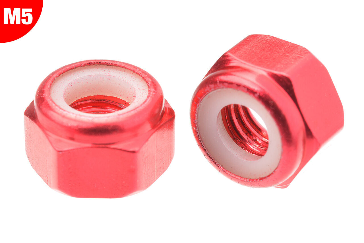 Team Corally - Aluminium Nylstop Nut - M5 - Red - 10 pcs