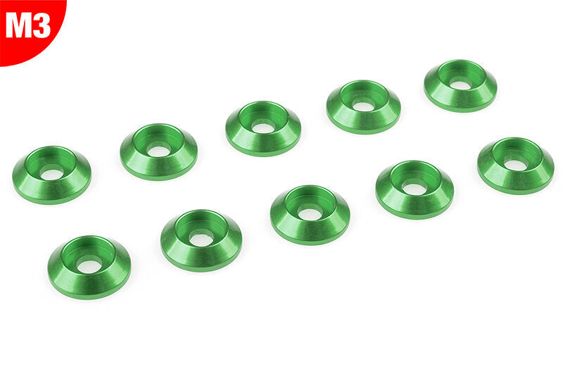 Team Corally - Aluminium Washer - for M3 Button Head Screws - OD=10mm - Green - 10 pcs