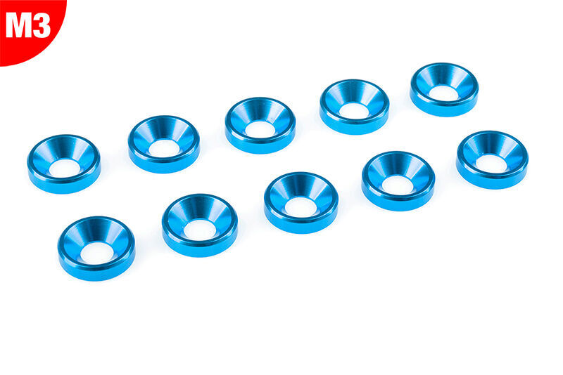 Team Corally - Aluminium Washer - for M3 Flat Head Screws - OD=8mm - Blue - 10 pcs