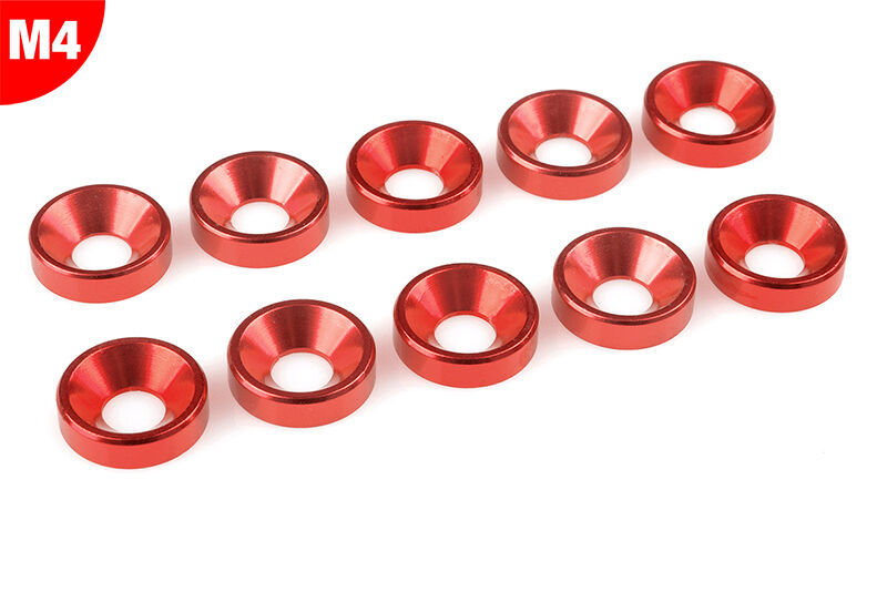 Team Corally - Aluminium Washer - for M4 Flat Head Screws - OD=10mm - Red - 10 pcs