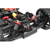 As usually seen only on premium competition-level RC vehicles, the Radix 6 is fitted with front, center, and rear silicone fluid-filled and sealed limited-slip differentials that ensure the full amount of power from the 2050KV Kuron motor gets to the ground. With easy removal and maintenance, you can even tune each differential individually to fine-tune the amount of traction at either end of the buggy! Inside, you'll find a complete set of metal gears and outdrive cups that connect to steel central driveshafts. The front end is driven by CVD driveshafts, while the rear is driven by robust metal dogbones, with the entire drivetrain supported by aerospace-quality 8x16x5mm rubber sealed ball bearings for maximum efficiency and durability.