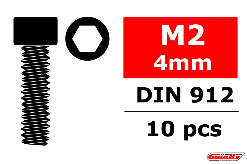 Team Corally - Steel Screws M2 x 4mm - Hex Socket Head - 10 pcs
