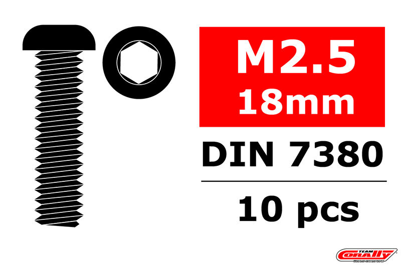 Team Corally - Steel Screws M2.5 x 18mm - Hex Button Head - 10 pcs