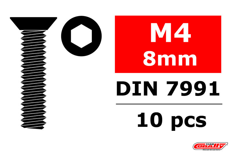 Team Corally - Steel Screws M4 x 8mm - Hex Flat Head - 10 pcs