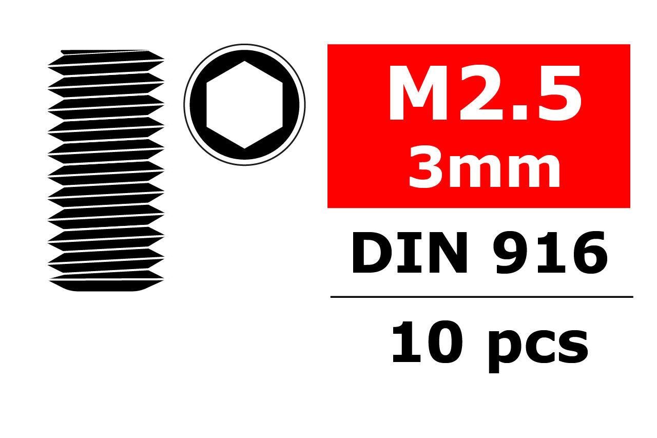 Team Corally - Steel Set Screws M2.5 x 3mm - Hex - 10 pcs
