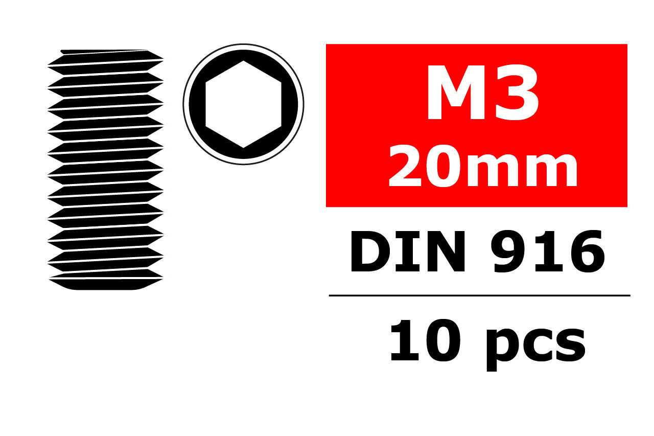 Team Corally - Steel Set Screws M3 x 20mm - Hex - 10 pcs