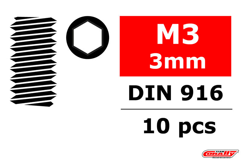 Team Corally - Steel Set Screws M3 x 3mm - Hex - 10 pcs