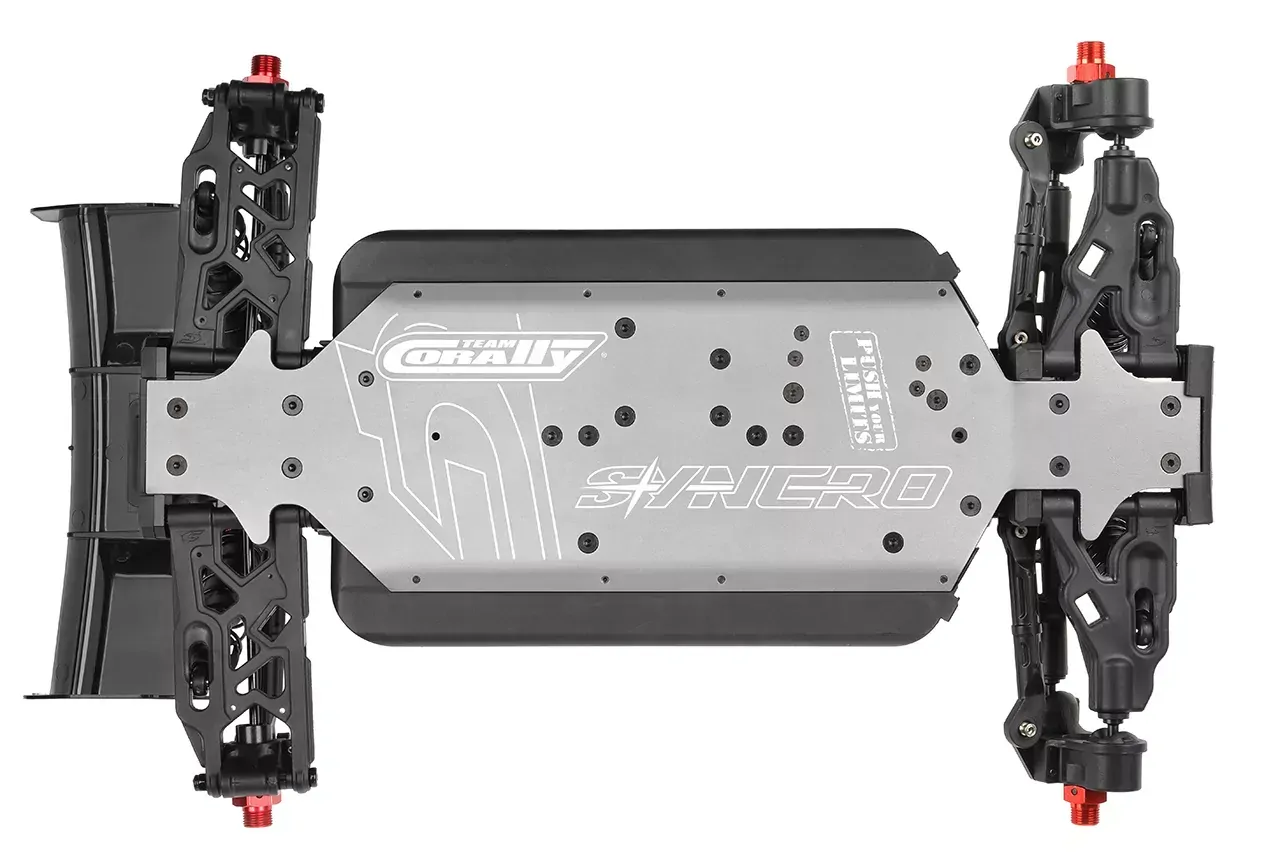 Every part of the Syncro is designed with durability and performance in mind. Its rugged suspension system, inspired by Team Corally’s high-performance 6S lineup, features heavy-duty suspension arms, reinforced steering blocks, and durable rear hubs. These components work together to handle jumps, bumps, and rough terrain with ease. The big bore composite shocks and sturdy shock towers keep the buggy stable, while the lightweight yet strong chassis ensures it’s ready to tackle any adventure. Add in features like a high-performance slipper clutch and steel drivetrain components, and the Syncro is as reliable as it is exciting to drive.